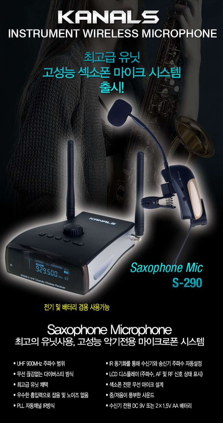 색소폰 전용 무선마이크 S290 (최고급 유닛 사용)