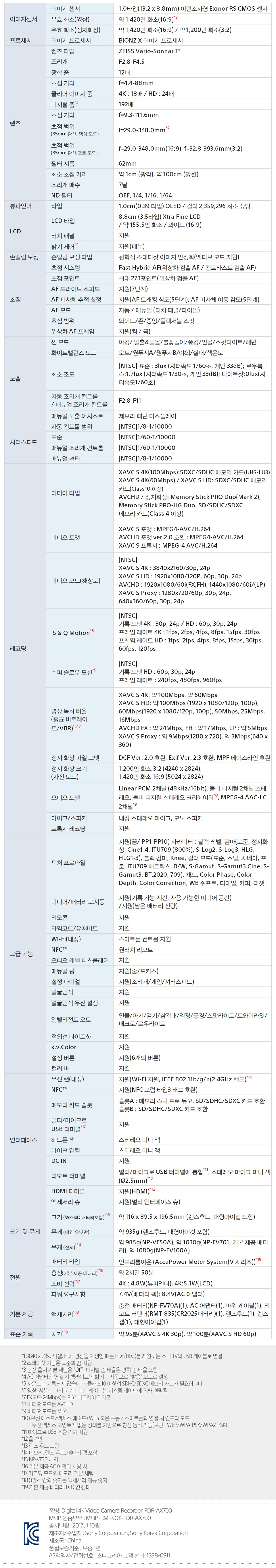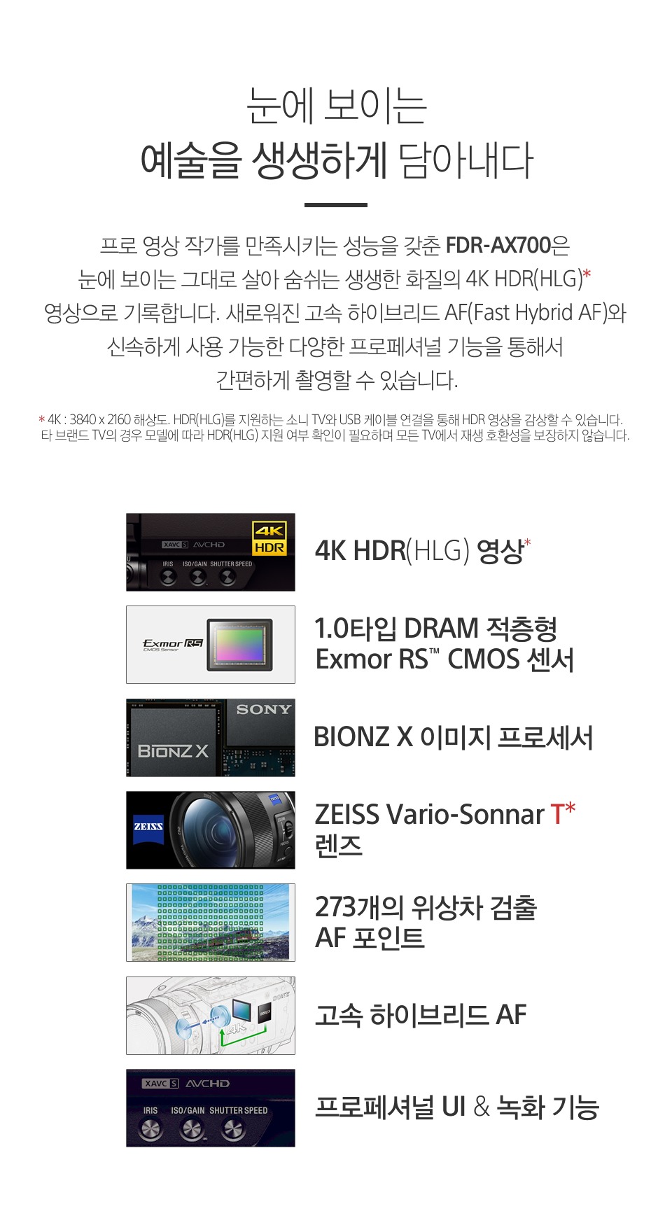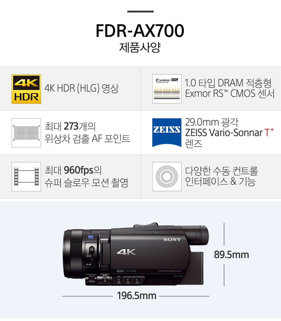 소니캠코더 4K핸디캠 FDR-AX700