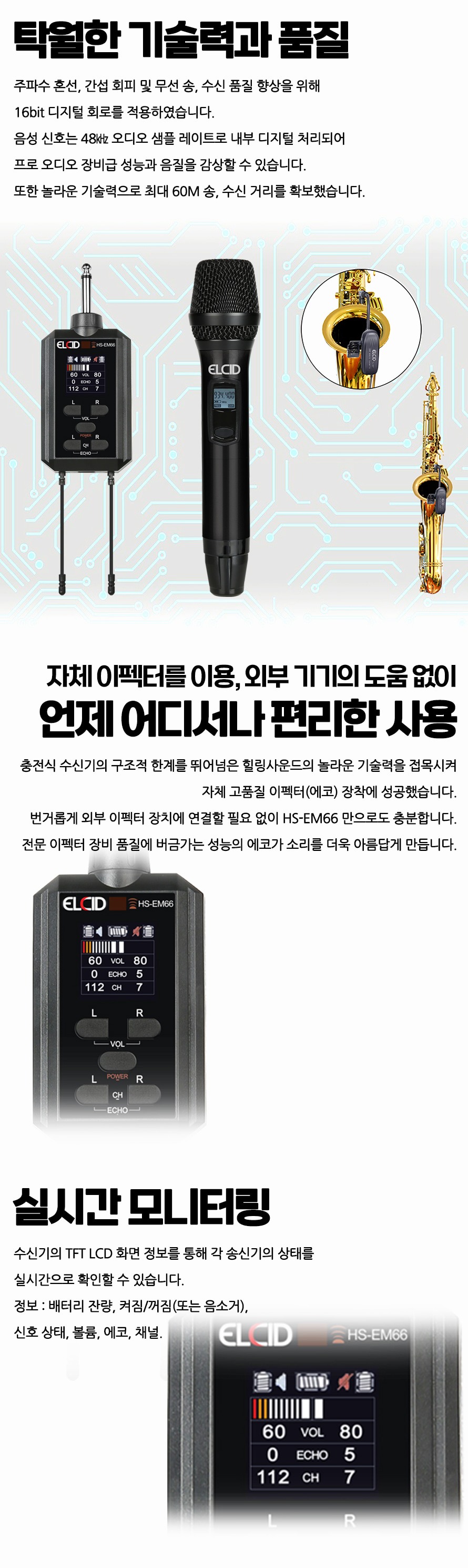 엘시드 ELCID HS-EM66 HH(핸드+핸드) 특별 할인! 2채널 무선 에코 마이크 자체 이펙터 강연 노래교실 공연 인터뷰 연주회