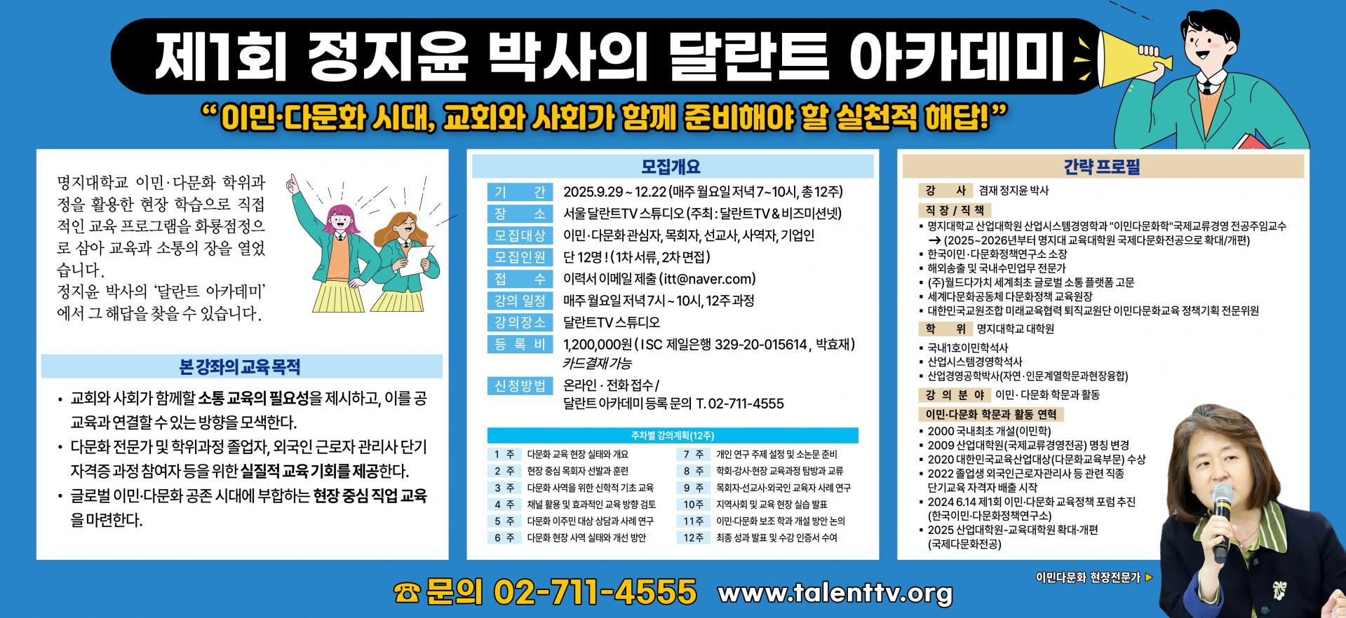 제1회 <정지윤 박사의 이민.다문화 달란트 아카데미> 수강 신청